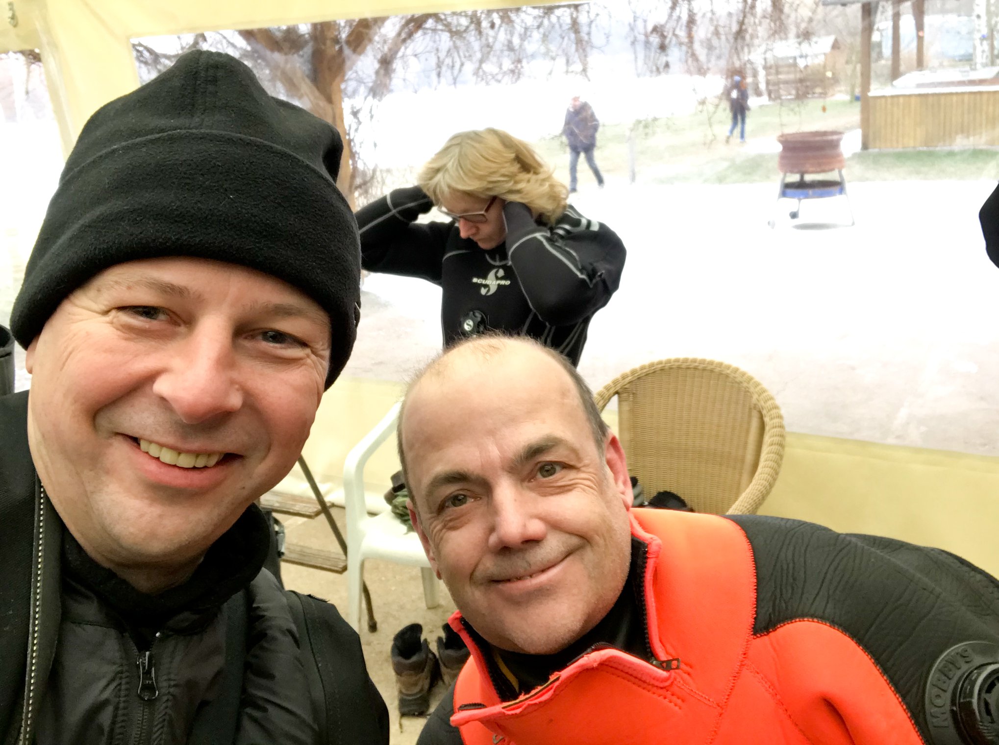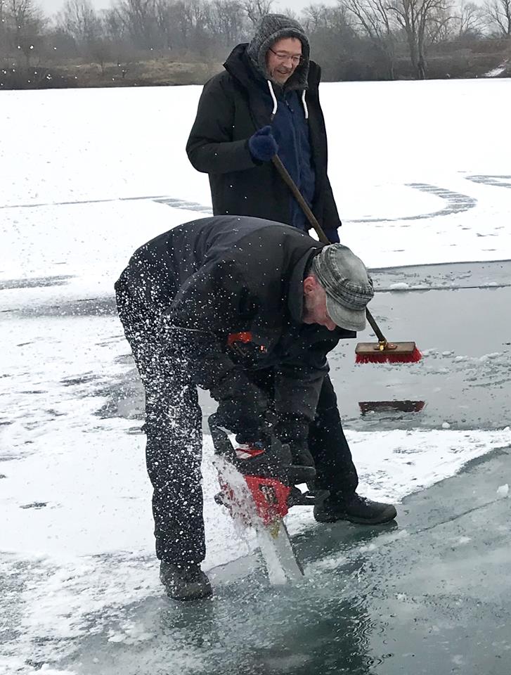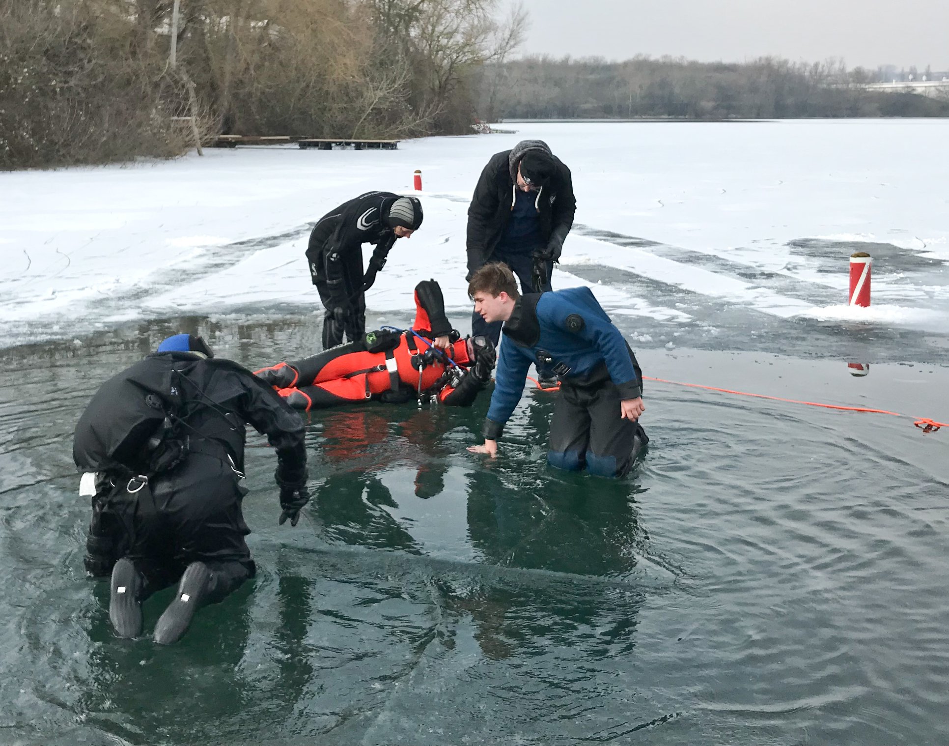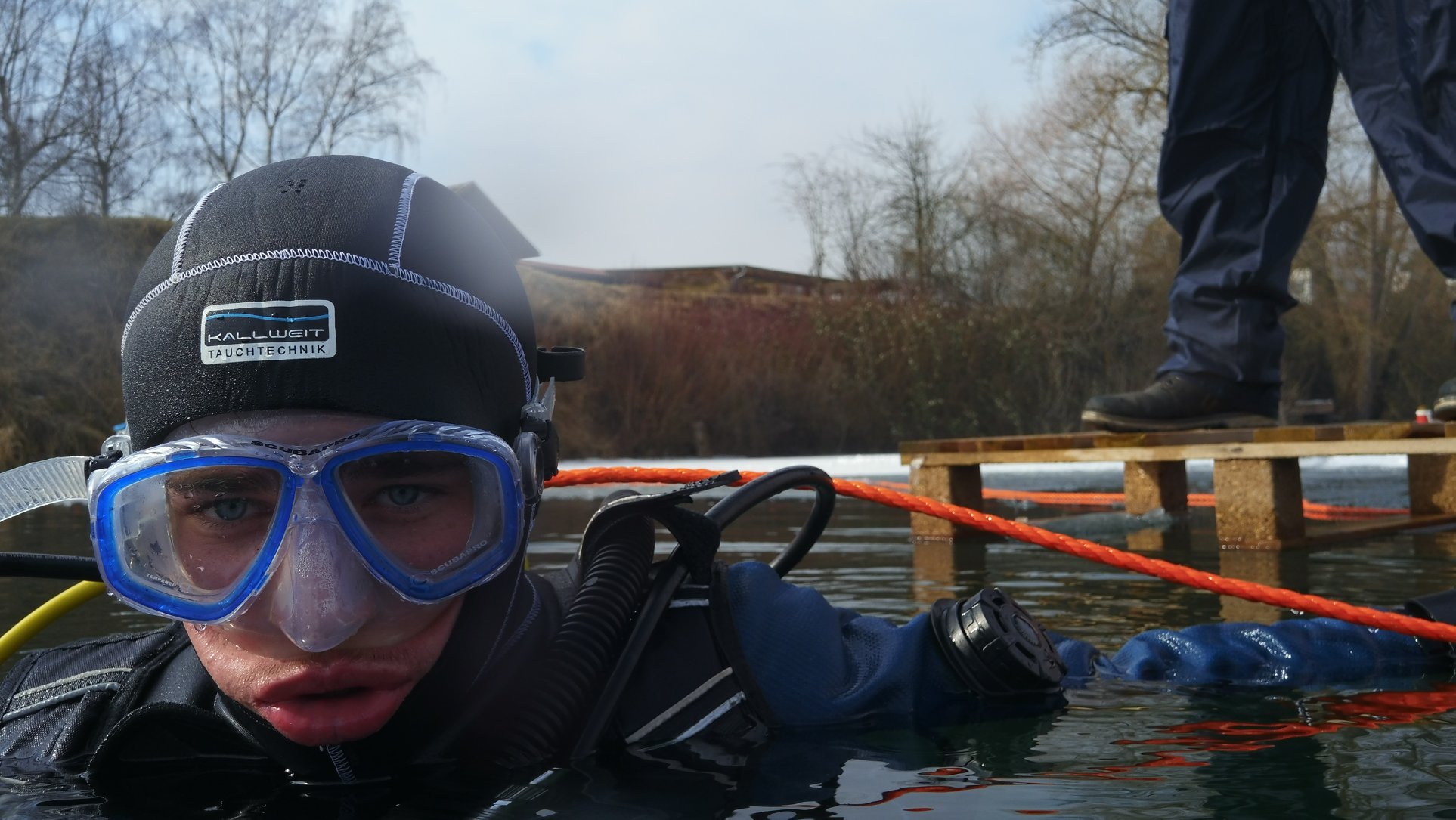 Die Nepturaner haben, nach dem das Eis vom 17. zum 18. Februar überraschend geschmolzen war, am 04.03. noch einmal zum spontanen Eistauchevent geladen. Und das war die richtige Entscheidung. Ein herrlicher Tag mit zunehmend steigenden Temperaturen und eine super glatte Eisschicht boten nahezu Top Bedingungen für ein solches Unterfangen. So waren dann auch, nach und nach an Seilen geführt, drei Tauchteams zu der mystischen Herausforderung gefolgt und sind unter die, den Weg nach oben versperrenden Eisschicht, getaucht.