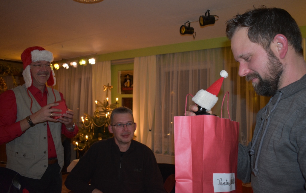 Unsere tolle Weihnachtsfeier mit kleinen Überraschungen für jeden Teilnehmer als belohnenden Abschluss für dieses recht turbulente Jahr. Wie geplant wurde die Runde zur gemeinsamen Findung eines neuen Logos für unseren Verein und einen Ausblick auf interessanten Projekte im Jahre 2017 genutzt.
