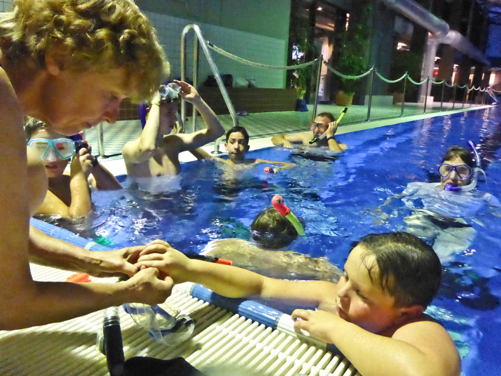 Schnorcheltraining für Kinder-und Jugendliche, Treffpunkt jeden Mittwoch in den Wintermonaten im Hallenbad um 19.30 Uhr mit viel Spaß. Unser Verein sucht immer neue Mitglieder in unserer Schorchelgruppe. Meldet Euch.