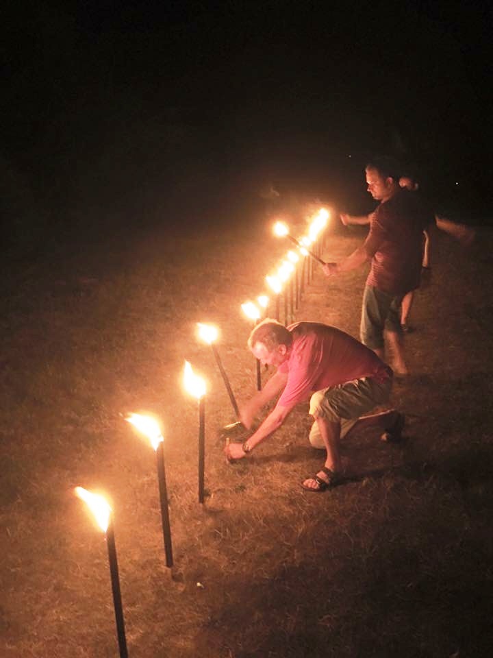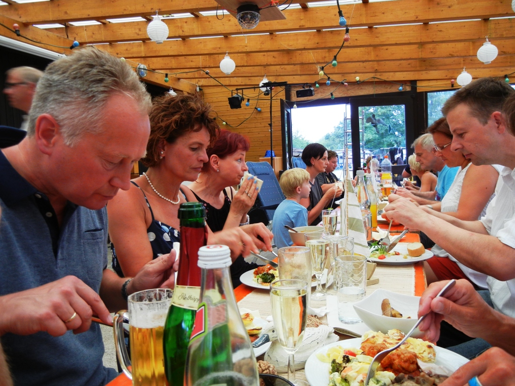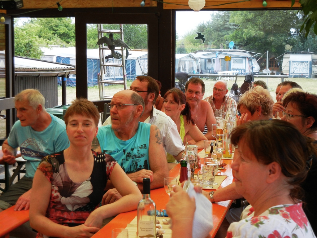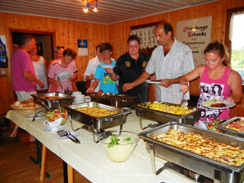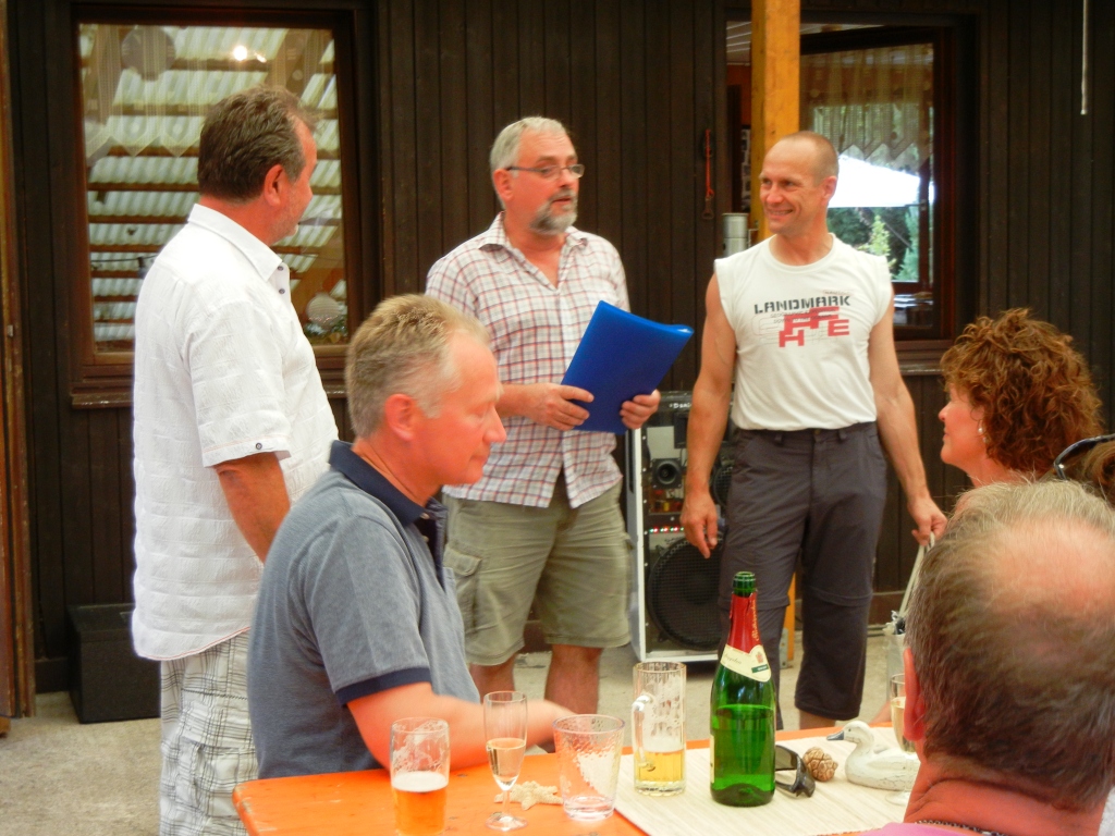 Und so wurde auch gefeiert, geehrt, gewürdigt und das Ganze durch ein hochrangiges Catering untermalt. Zu späterer Stunde zierte eine Fackelleiste mit 25 Lichtern den Blick auf unser Vereinsgewässer, den Tauchersee.