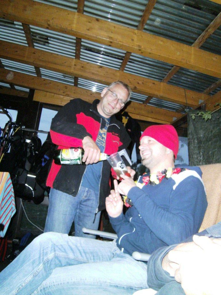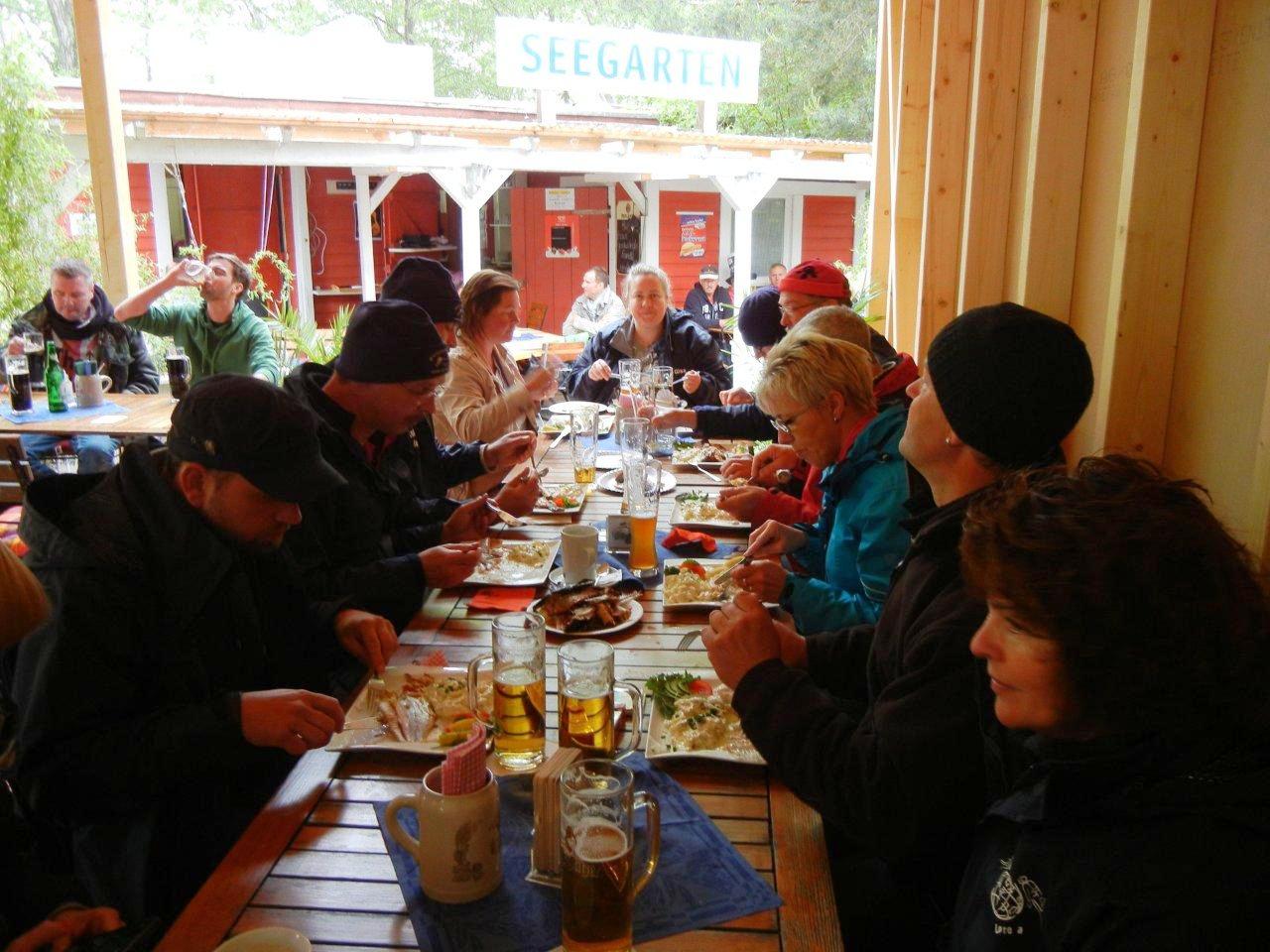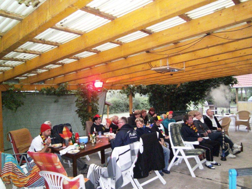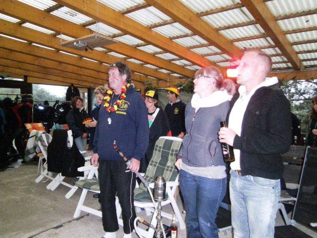 wie eigentlich immer beim Zelten am Kulkwitz See konnten wir unsere Hoffnung auf dauerhaft schönes Wetter kurz vor der Abreise begraben. Zwar noch trocken angereist wurden die folgenden Tage aber zu einer Schlammschlacht. Böse Zungen behaupteten wir wollten ein Pfützentauch-Brevet erfinden. Tag und Nacht prasselt der Regen auf die Zeltwände herunter und weicht kontinuierlich dem Boden auf. Aber schon am Herrentag hatte der Wettergott ein einsehen. Während des Forellenessens mit Livemusik klarte der Himmel auf, die Sonne ermöglichte die traditionelle Seewanderung und schlagartig war die Stimmung wieder auf höchstem Niveau.