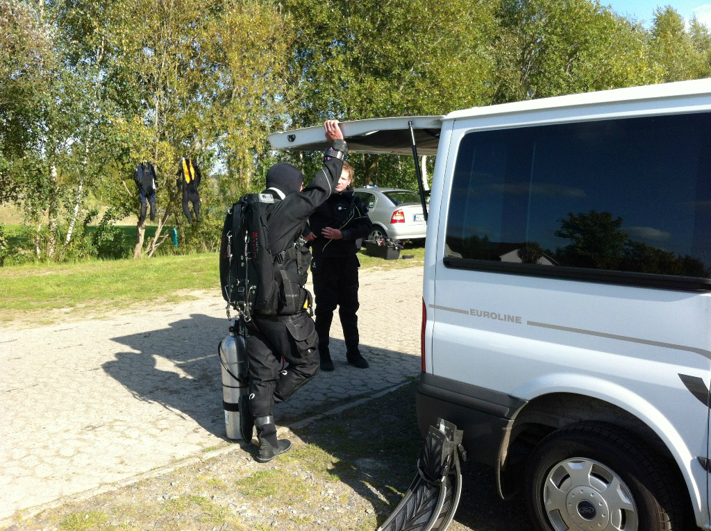 Als Axel und ich, im Dezember 2011, der Einladung vom TSC Erfurt zum Weihnachtstauchen am Erfurter Nordstrand folgten, waren wir von dem dortigem Gelände begeistert. Hier beschlossen wir bereits, dass der TSC- Neptun im folgenden Sommer, der ansässigen Tauchschule Yellow Submarin , einen Wochenendbesuch abstattet. Vom 09.08. bis 12.08.2012 war es nun endlich soweit. Axel, Daniel und Michael packten alle ihre Sachen um ein schönes Tauchwochenende zu verbringen. Nach langem fummeln am Reißverschluss zwischen Klappfix und Vorzelt, des erstmalig genutzten TSC Klappfix, gelang es Daniel nach einer Stunde, die gewünschte Verbindung herzustellen. Nun konnte das Wochenende beginnen. Bei immer besser werdendem Wetter genossen wir die Tauchgänge der nächsten Tage. Leider hatten wir das Pech, dass gerade in dieser Zeit, die Sicht unter Wasser nur 2-3 Meter betrug. Reicher Fischbesatz mit Großen Karpfen und Hechten und dazu noch eine einzigartige Flora entschädigten uns aber dafür. Auch an Land genossen wir die schönen Tage. Mit viel Knoblauch und in maßen Alkohol, genossen wir die Abende und hatten jede Menge Spaß . Wie immer ist die Zeit viel zu schnell vergangen, so dass wir am Sonntag den 12.08.2012, am Nachmittag, unsere Heimreise antreten mussten . Einen Trost spendete uns der Besitzer der Tauchschule Yellow Sabmarin Peter Jahr, indem er den TSC- Neptun am zur Spektakulären Nachttauchschatzsuche am 01.09.2012 zum Nordstrand einlud. Nähere Informationen bei Axel und Michael. Gerne haben wir unsere Teilnahme zu diesem Event zugesagt und vielleicht ist dieses Mal das Interesse der Mitglieder größer, mal wieder eine Tauchfahrt mit dem TSC- Neptun zu unternehmen.